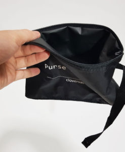 Alle Handtasche Regenschutz von Cloversac werden jetzt mit einer wasserdichten Tasche geliefert, um Ihre durchnässte Regenhülle nach dem Gebrauch aufzubewahren.
